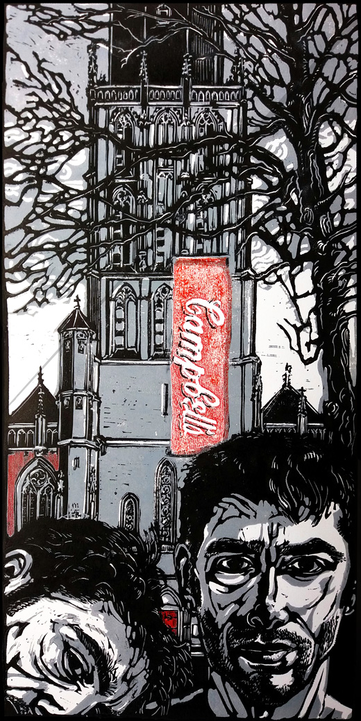 • 2023. Kruiswegstaties. Remigiuskerk Steenderen. Groepstentoonstelling, lino 'februari 2023. Noord Syrië' 2 t/m 10-04